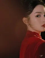 周也轻抚红色纱裙,姿态优雅如古典画卷,眼中闪烁着对新年的无限憧憬